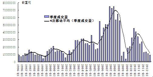 圖1. 1996-2012年全球新船訂單季度成交量走勢