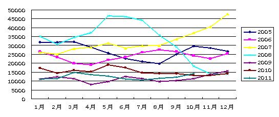 圖2. 2005-2011年克拉克松海運(yùn)綜合指數(shù)走勢比較