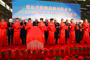 2012年2月24日上午10時28分,浙江省海運集團有限公司4.9萬噸散貨船首制船開工儀式在舟山五洲船舶修造有限公司隆重舉行。中國船級社副總裁兼上海分社總經(jīng)理莫鑒輝和省、市海事局、浙江省海運集團、上海佳豪船舶工程設(shè)計股份有限公司以及有關(guān)單位領(lǐng)導(dǎo)出席了開工儀式。