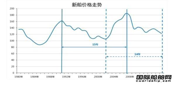 他評論稱,根據過去36年的船舶價格指數趨勢,經過大約15年的一個周期會出現一個急劇增長,這一增長通常持續(xù)5至6年;因此,投資造船和航運業(yè)務需要在5年內實現利潤,并在接下來的20年內等待機遇。