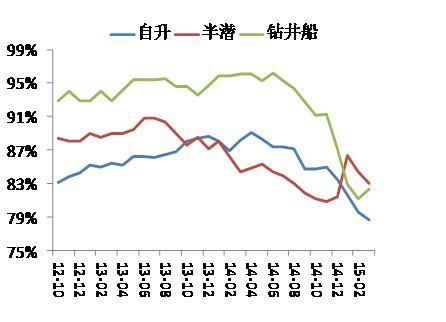 2)2015年以來(lái)海工裝備運(yùn)營(yíng)市場(chǎng)持續(xù)惡化,主要海工裝備利用率和租金水平繼續(xù)下跌。
