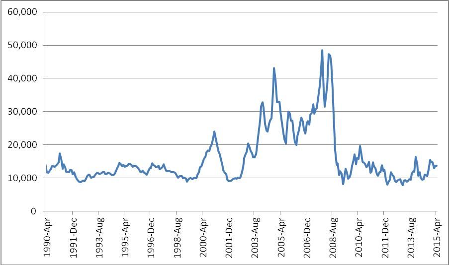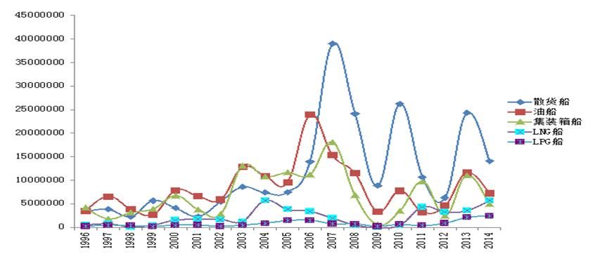 1996-2014年世界主要船型新船成交周期波動(dòng)