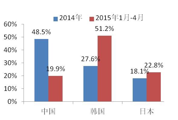 2015年1月-4月中日韓訂單承接情況