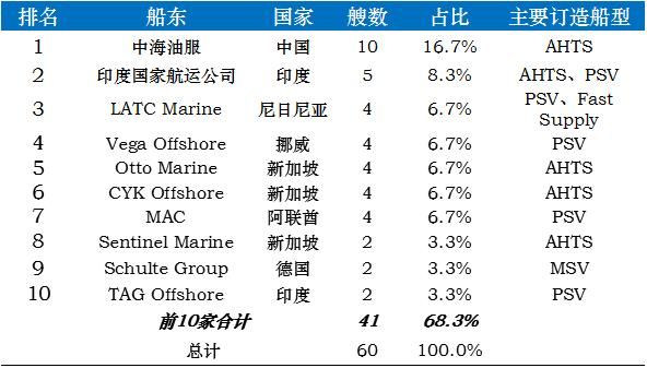 3)中國(guó)中海油服訂造10艘三用工作船,占1-4月海工船訂單總量的16.7%。