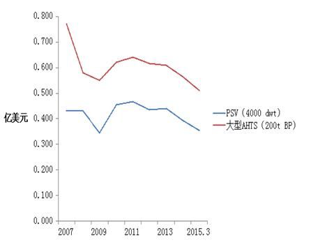 2)年初以來(lái),350英尺自升式鉆井平臺(tái)價(jià)格累計(jì)降幅達(dá)20%左右,海洋工程船價(jià)格平均降幅約10%,其中技術(shù)含量較低的中小型海洋工程船表現(xiàn)較為明顯。