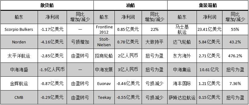 2014年部分船東經(jīng)營(yíng)業(yè)績(jī)情況