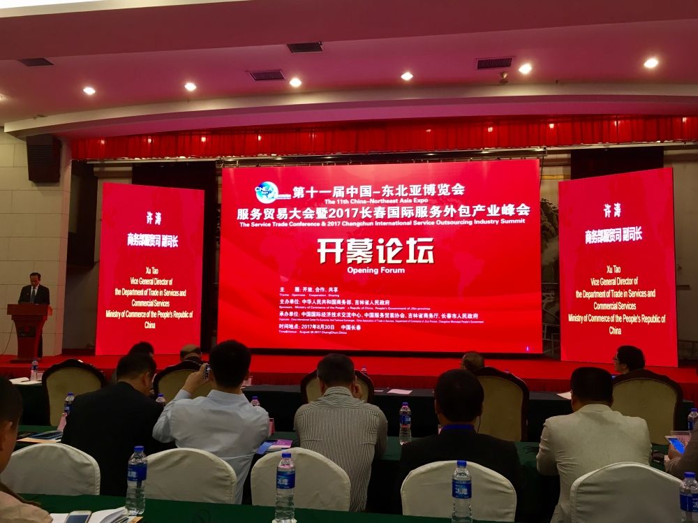 第十一屆東北亞博覽會(huì)服務(wù)貿(mào)易大會(huì)暨2017長(zhǎng)春國(guó)際服務(wù)外包產(chǎn)業(yè)峰會(huì)于2017年8月30日至9月1日在吉林省長(zhǎng)春市華天大酒店舉行。來(lái)自全國(guó)省市商務(wù)系統(tǒng)、服務(wù)貿(mào)易發(fā)展基地(園區(qū))、重點(diǎn)服務(wù)貿(mào)易企業(yè)代表和韓國(guó)、日本的公司代表共百余人參加,協(xié)會(huì)也派員參加了此次會(huì)議。
