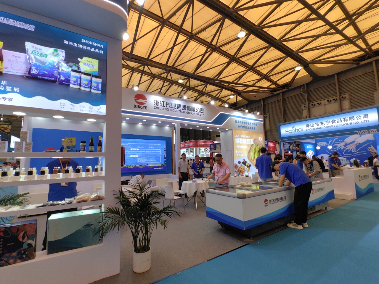 陳國(guó)強(qiáng)副會(huì)長(zhǎng)先后走訪了多家來自舟山的漁業(yè)企業(yè)展位,深入了解企業(yè)在產(chǎn)品研發(fā)、市場(chǎng)拓展、出口貿(mào)易等方面的最新動(dòng)態(tài),并與協(xié)會(huì)理事單位浙江興業(yè)集團(tuán)有限公司的展位負(fù)責(zé)人進(jìn)行了深入交流。興業(yè)集團(tuán)本身實(shí)力雄厚,是國(guó)家高新技術(shù)企業(yè),農(nóng)業(yè)產(chǎn)業(yè)化國(guó)家重點(diǎn)龍頭企業(yè),全國(guó)農(nóng)產(chǎn)品加工業(yè)出口示范企業(yè)。興業(yè)集團(tuán)已連續(xù)3年參加上海漁博會(huì),通過這一國(guó)際性平臺(tái),興業(yè)集團(tuán)成功吸引了大量國(guó)內(nèi)外采購(gòu)商的關(guān)注,獲得了穩(wěn)定的訂單增長(zhǎng),拓展了客戶資源,提升了品牌知名度。展會(huì)期間,興業(yè)集團(tuán)展示了多款優(yōu)質(zhì)水產(chǎn)品及創(chuàng)新加工產(chǎn)品,吸引了眾多專業(yè)買家駐足洽談,現(xiàn)場(chǎng)氣氛熱烈。