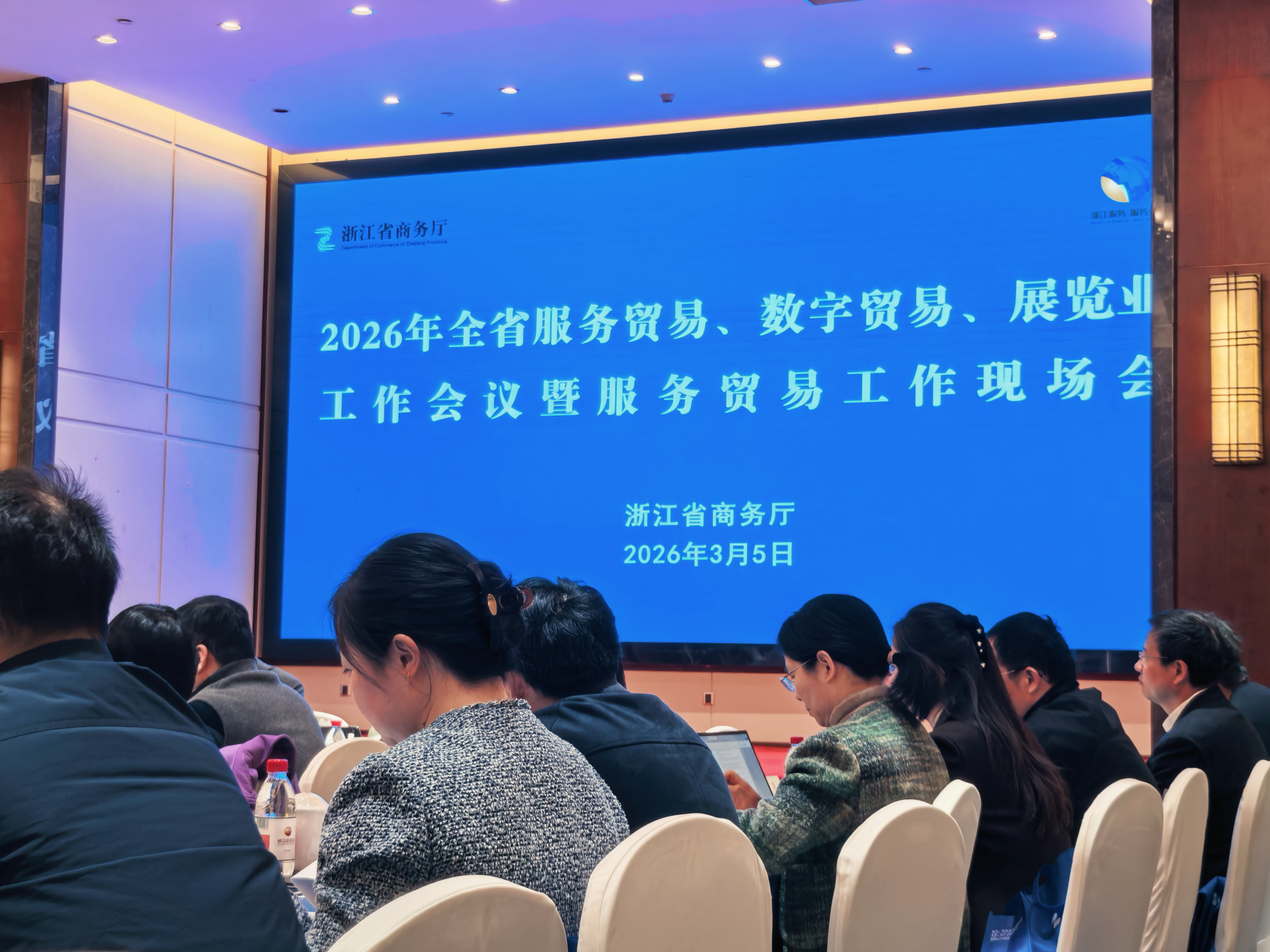 為深入貫徹全國(guó)服務(wù)消費(fèi)和服務(wù)貿(mào)易工作會(huì)議精神,落實(shí)省委經(jīng)濟(jì)工作會(huì)議和全省商務(wù)工作會(huì)議部署要求,總結(jié)2025年全省服務(wù)貿(mào)易、數(shù)字貿(mào)易發(fā)展成效,部署2026年重點(diǎn)工作任務(wù),2026年3月5日至6日,全省服務(wù)貿(mào)易、數(shù)字貿(mào)易、展覽業(yè)工作會(huì)議暨服務(wù)貿(mào)易工作現(xiàn)場(chǎng)會(huì)在金華東陽(yáng)順利召開。各市商務(wù)局分管領(lǐng)導(dǎo)及相關(guān)主管處室負(fù)責(zé)人,部分縣(市、區(qū))商務(wù)主管部門分管領(lǐng)導(dǎo),國(guó)家特色服務(wù)出口基地、省級(jí)數(shù)字貿(mào)易示范區(qū)主要負(fù)責(zé)人齊聚東陽(yáng),共商全省服務(wù)貿(mào)易、數(shù)字貿(mào)易、展覽業(yè)高質(zhì)量發(fā)展大計(jì)。